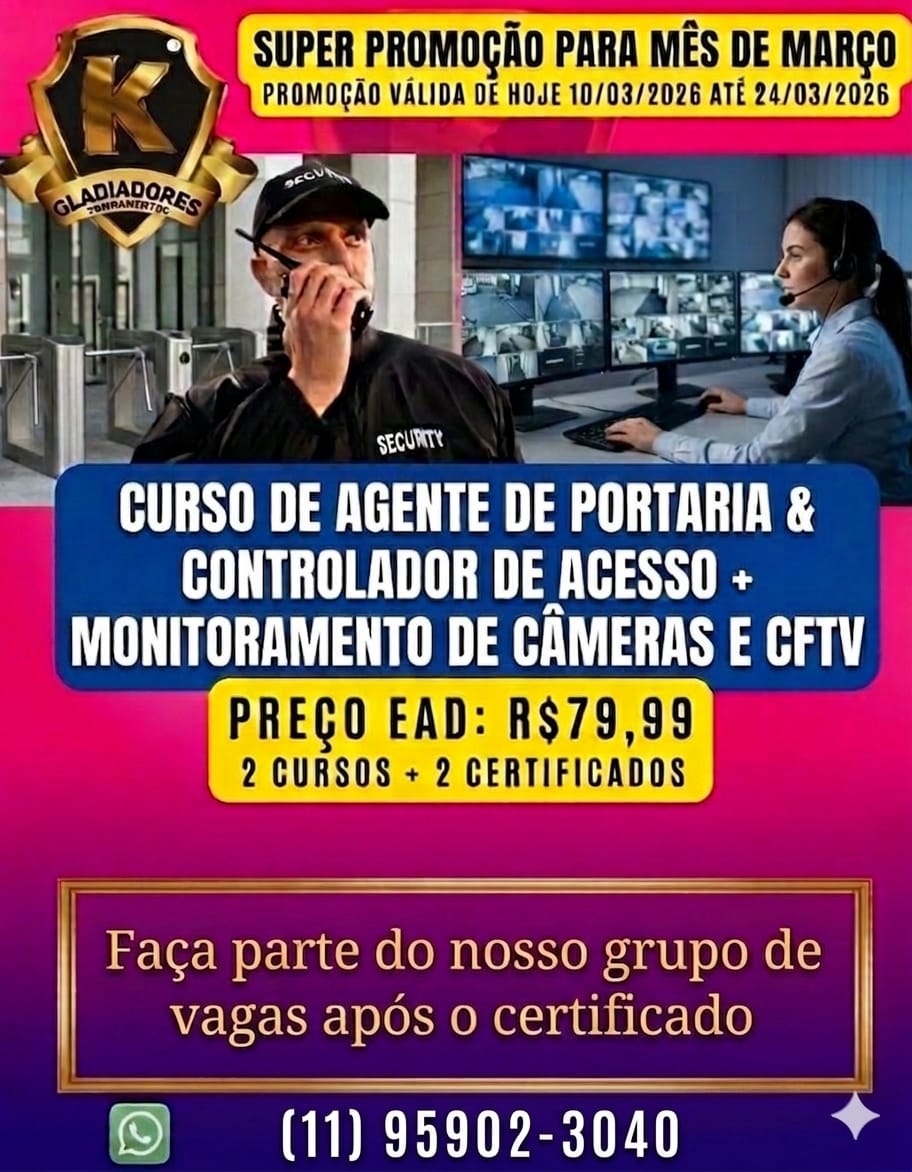 Formação completa para quem deseja atuar na linha de frente da segurança patrimonial, sendo responsável pelo controle de entrada e saída de pessoas, veículos e materiais.
